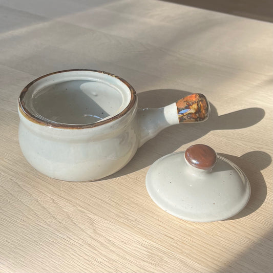 Beige krukke med håndtag