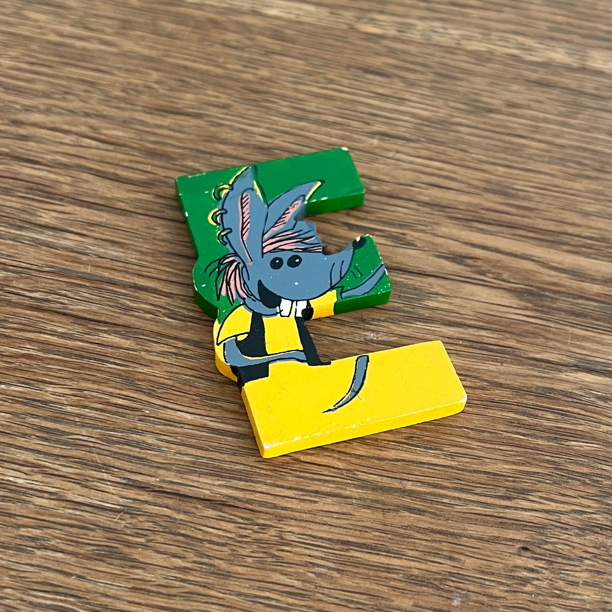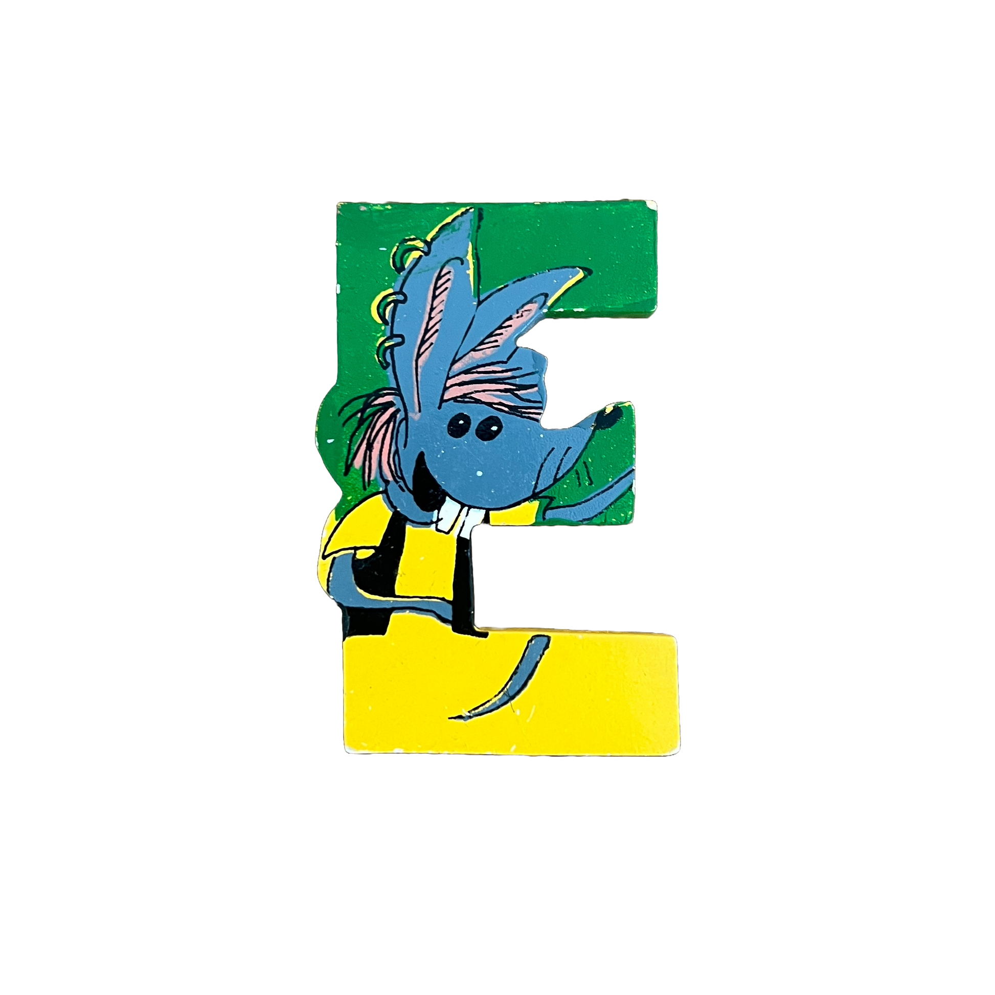 Dette fine træbogstav E er den perfekte måde at tilføje et personligt præg på børneværelsesdøren. Bogstavet er både dekorativt og tidløst, hvilket gør det til en fin detalje i ethvert børneværelse. Dette bogstav E er grønt og gult med den søde mus på fra Cirkeline.