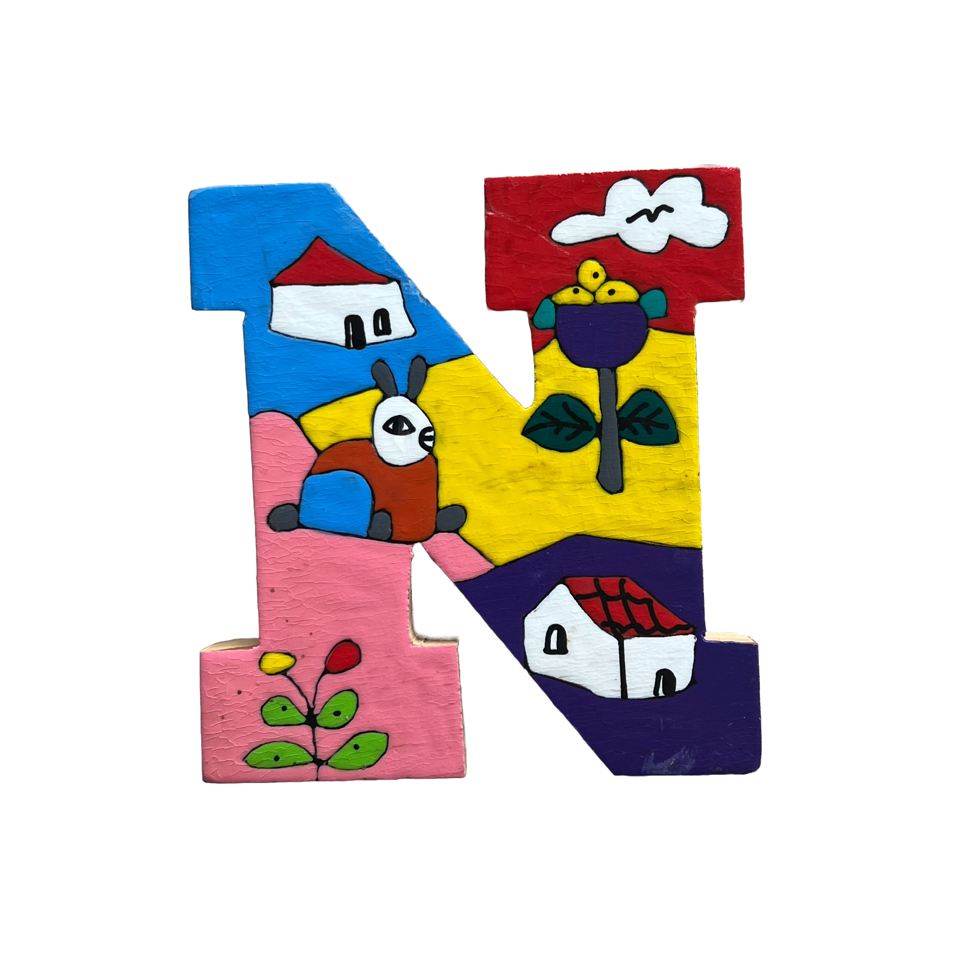 Dette fine træbogstav N er den perfekte måde at tilføje et personligt præg på børneværelsesdøren. Bogstavet er både dekorativt og tidløst, hvilket gør det til en fin detalje i ethvert børneværelse. Dette bogstav N er med mange fine farver og motiver og i en sød retro stil.