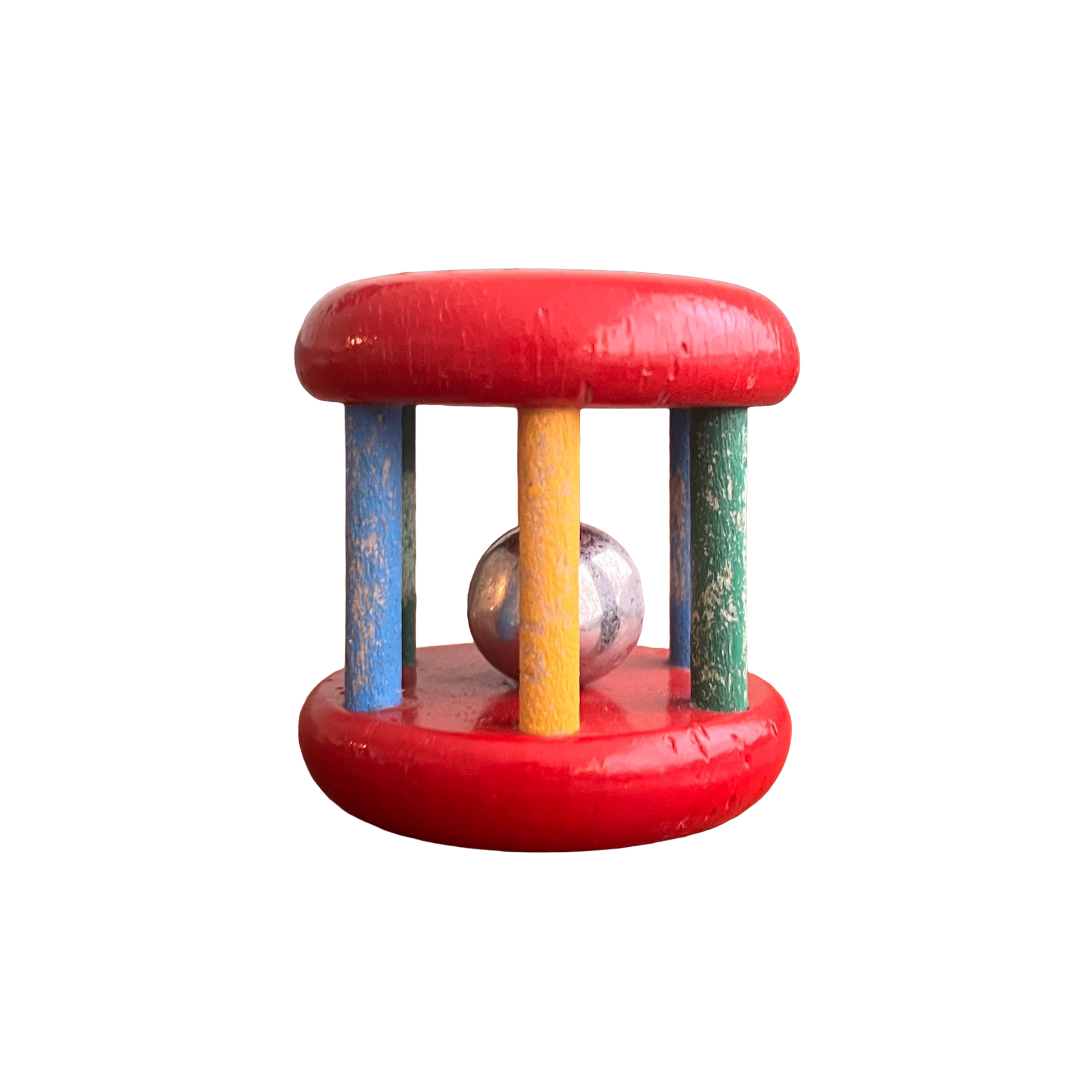 Klassisk lille rød BRIO rangle med bjælde indeni - et must have til en lille ny. Lyden fra bjælden og de fine farver fanger barnets opmærksomhed - og så er den nem at gribe fat i for de små hænder. Ranglen her er godt brugt og har tydelige (men hyggelige) brugsspor, som bare giver den ekstra charme og fortæller, at den har været elsket.
