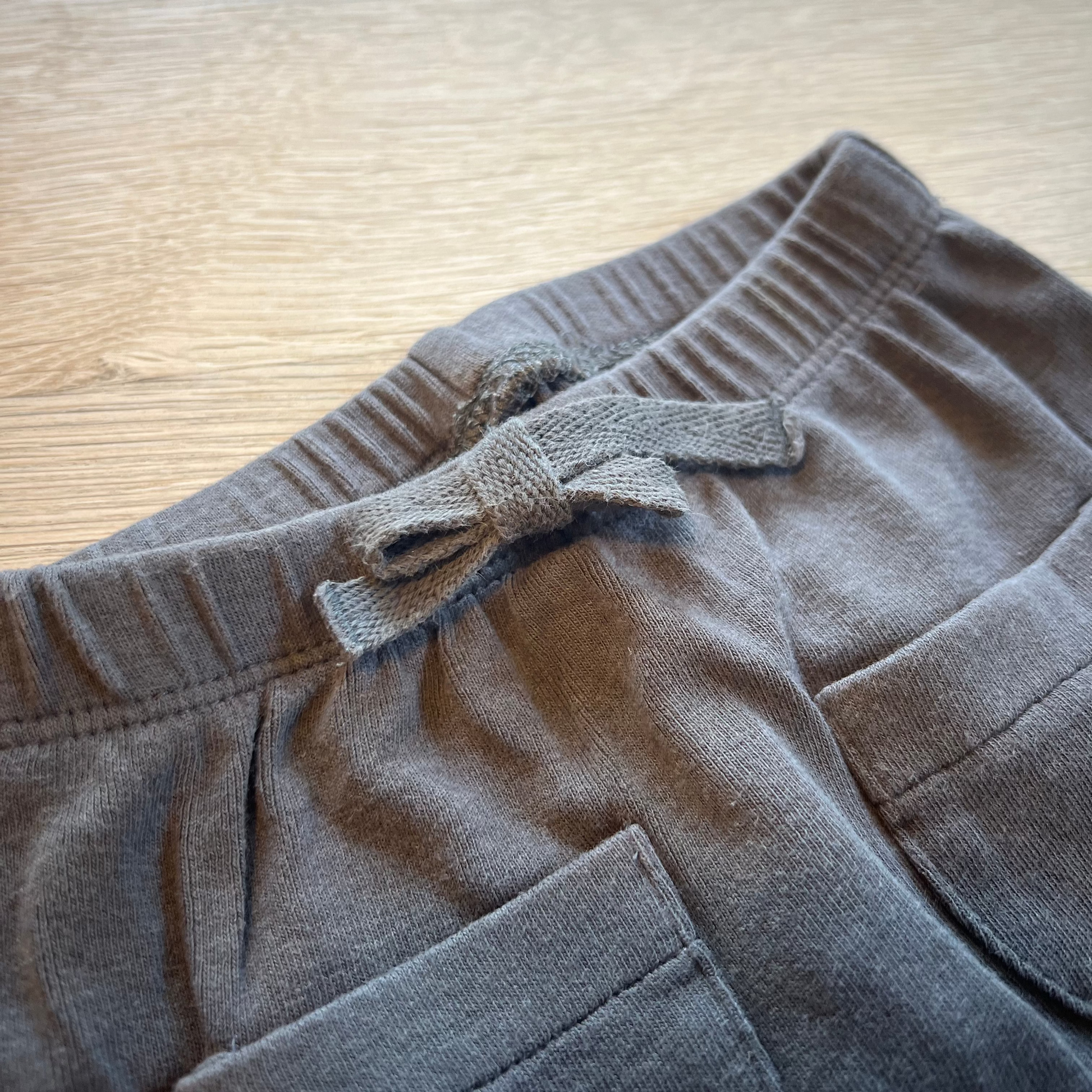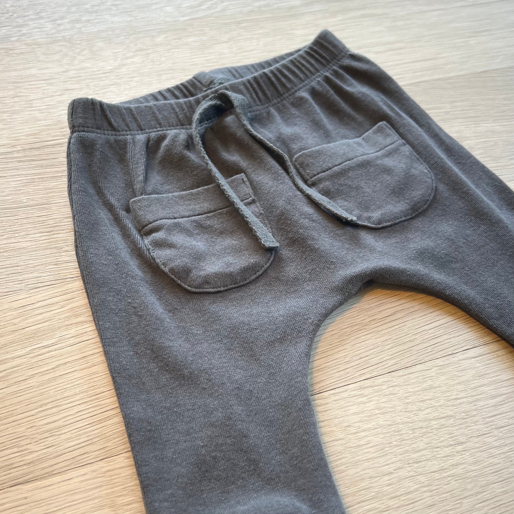 Den enkle grå farve gør bukserne nemme at matche med enhver body eller top, mens de små lommer foran tilføjer et sødt og legende touch. Selvom lommerne er dekorative, giver de bukserne et voksent og stilfuldt udtryk, der gør dem ideelle til både hverdag og mere festlige anledninger.