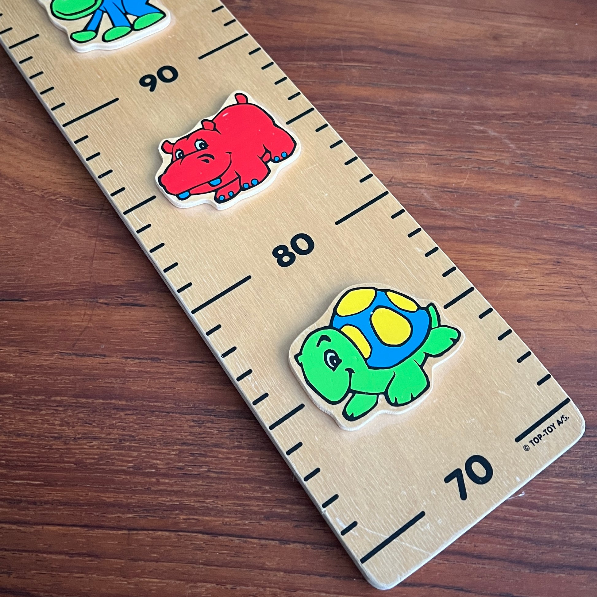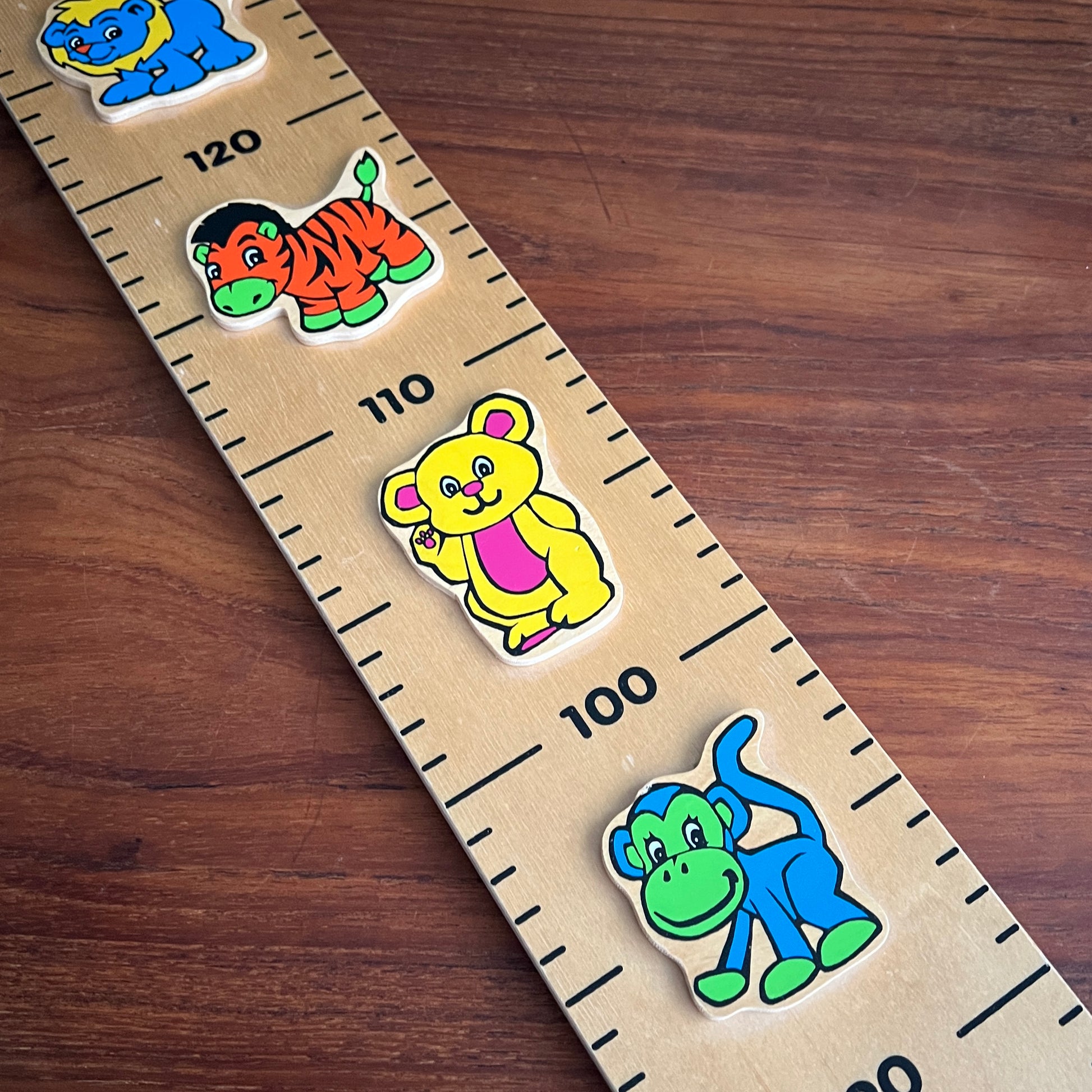 Denne Kids Wood højdemåler er pyntet med søde og farverige dyr, der gør det sjovt at følge med i, hvor meget barnet vokser.