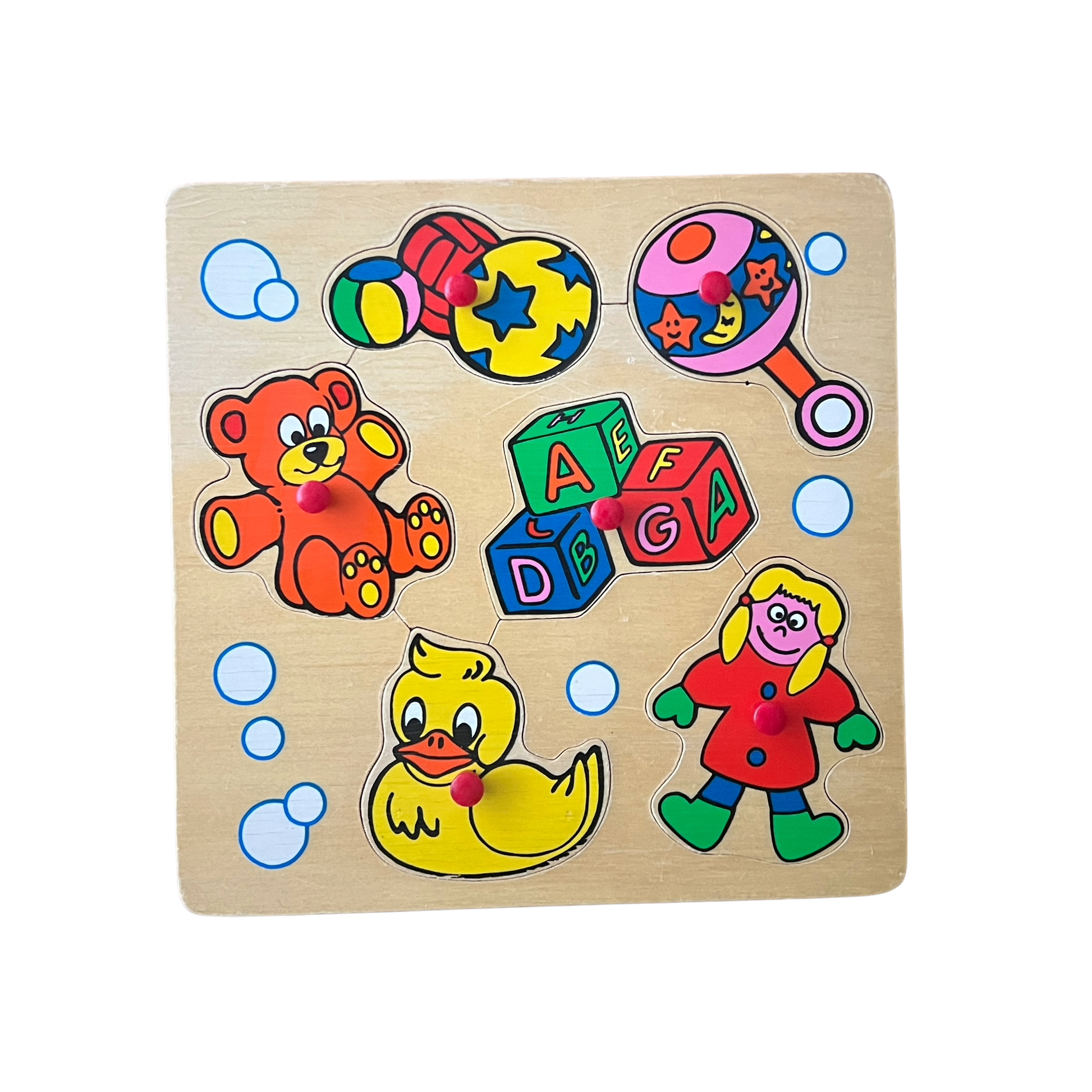 Det fineste puslespil i træ med søde motiver af legetøj fra børneværelset. Et solidt og holdbart træpuslespil til børn, som styrker finmotorik, problemløsning og genkendelse gennem leg.