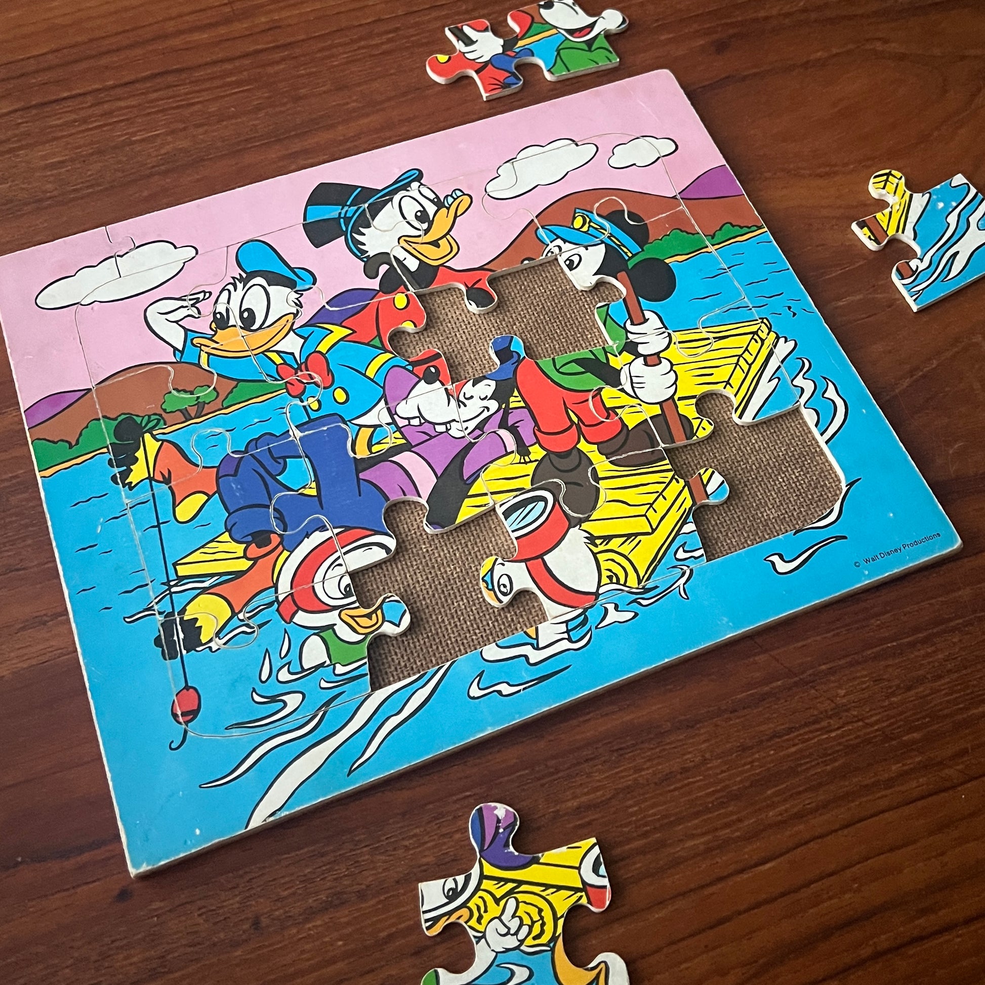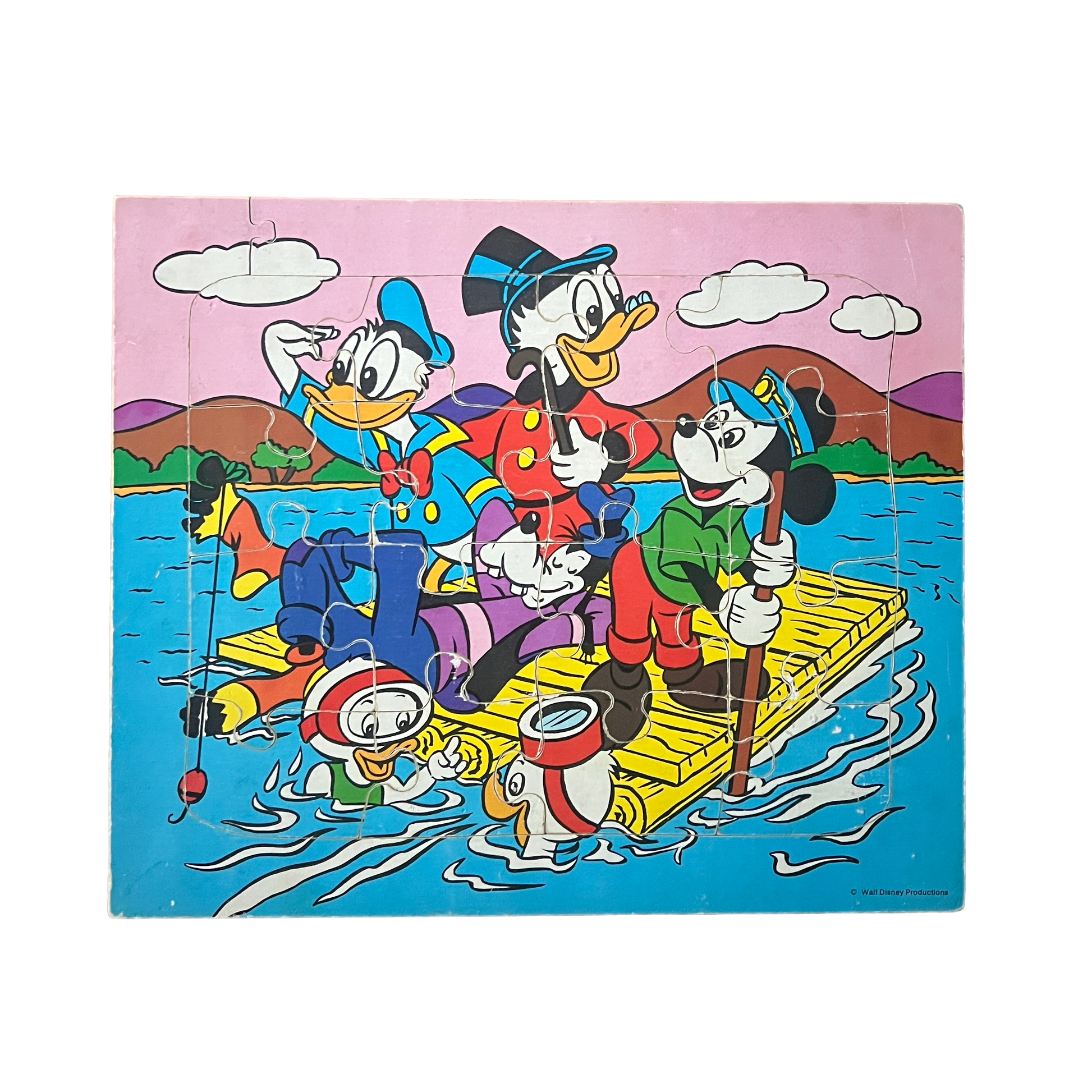 Originalt retro træpuslespil med klassiske Disney-figurer som Anders And, Joakim von And samt Mickey og Fedtmule. Puslespillet stammer fra slut 1980’erne / start 1990’erne og er et ægte nostalgisk fund.