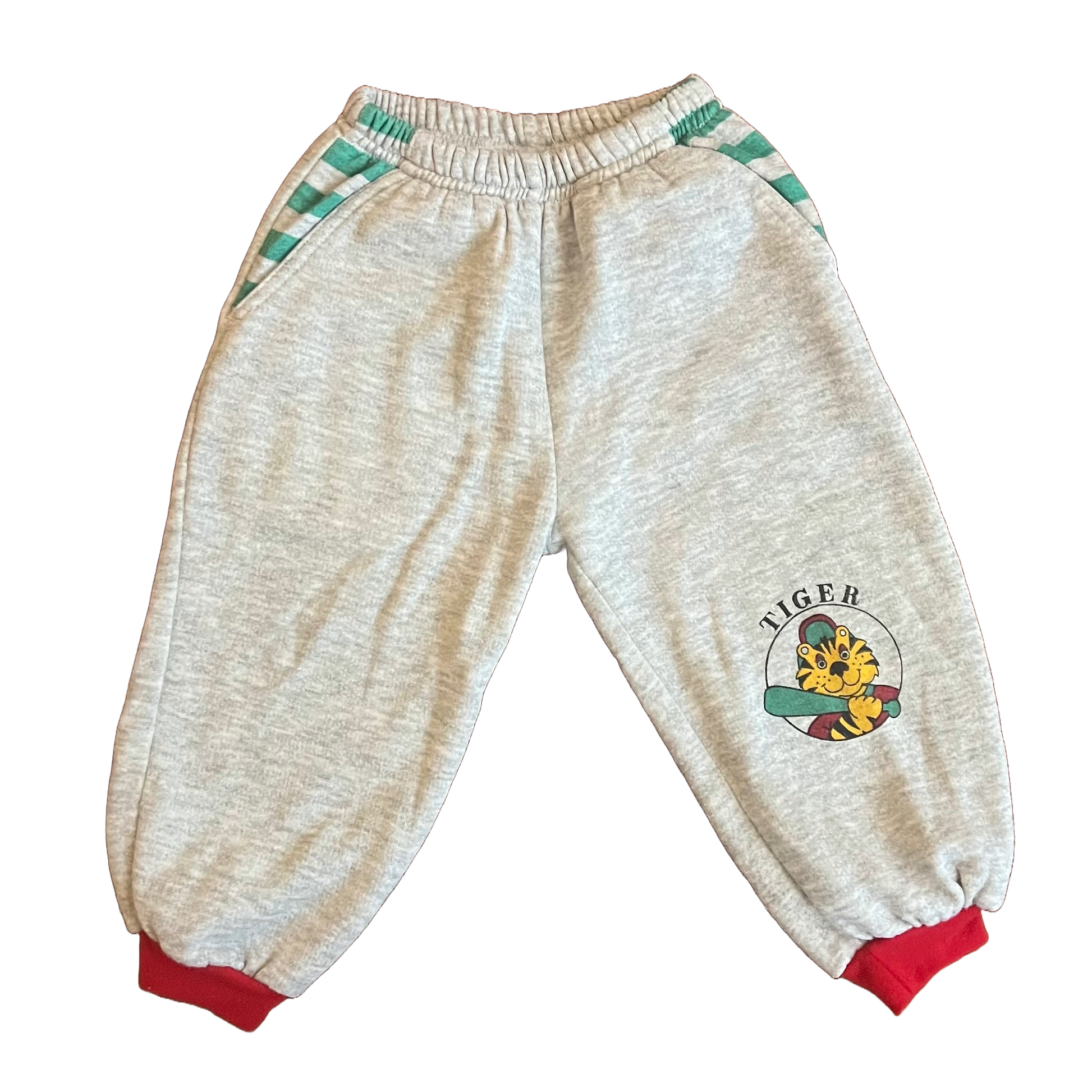 Disse skønne grå retro sweatpants er simpelthen bare så fede. De er fremstillet i en blød bomuldsblanding, der sikrer maksimal komfort og bevægelsesfrihed hele dagen. Det søde tigerprint og de grøn- og hvidstribede lommedetaljer giver bukserne et legende og retroinspireret look, som både børn og voksne vil elske.