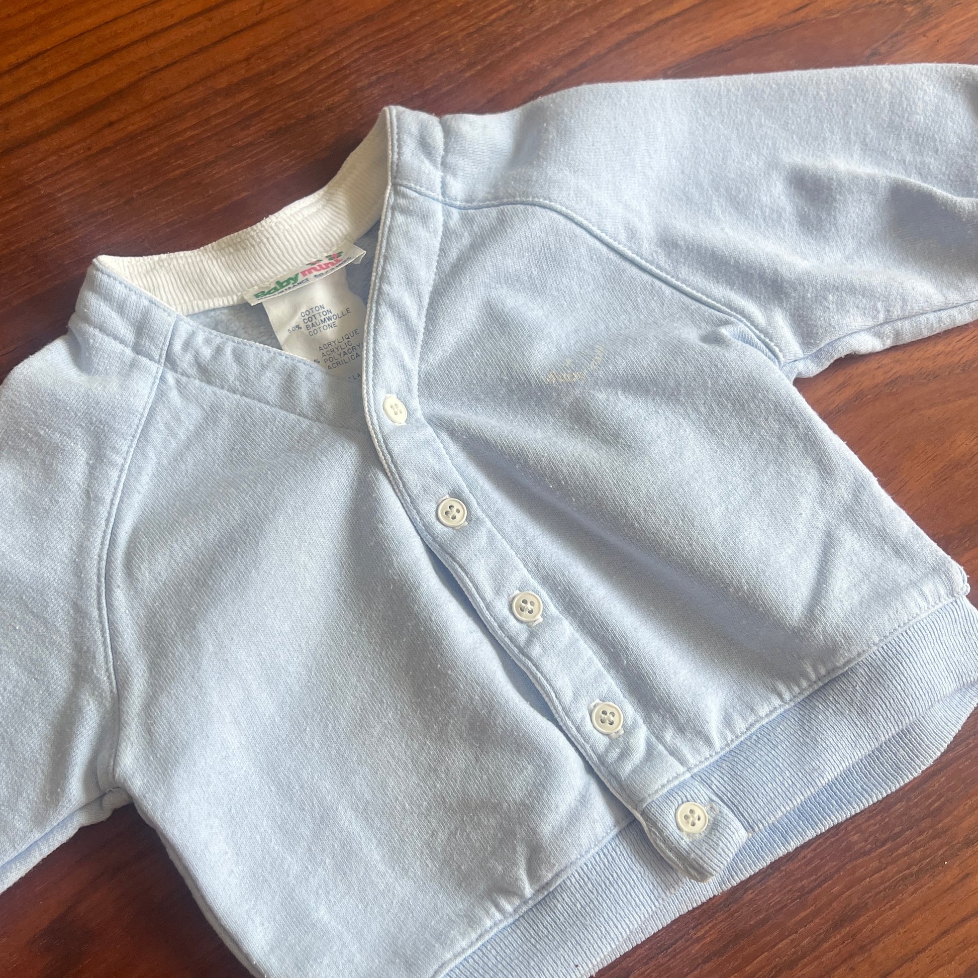 Den fineste lille trøje i en blød og behagelig kvalitet – perfekt til de mindste. Trøjen er lyseblå og lukkes med små knapper foran, så den er nem at få af og på. Enkel og klassisk i designet – og skøn som både hverdagsfavorit og som varm trøje på kølige sommerdage.