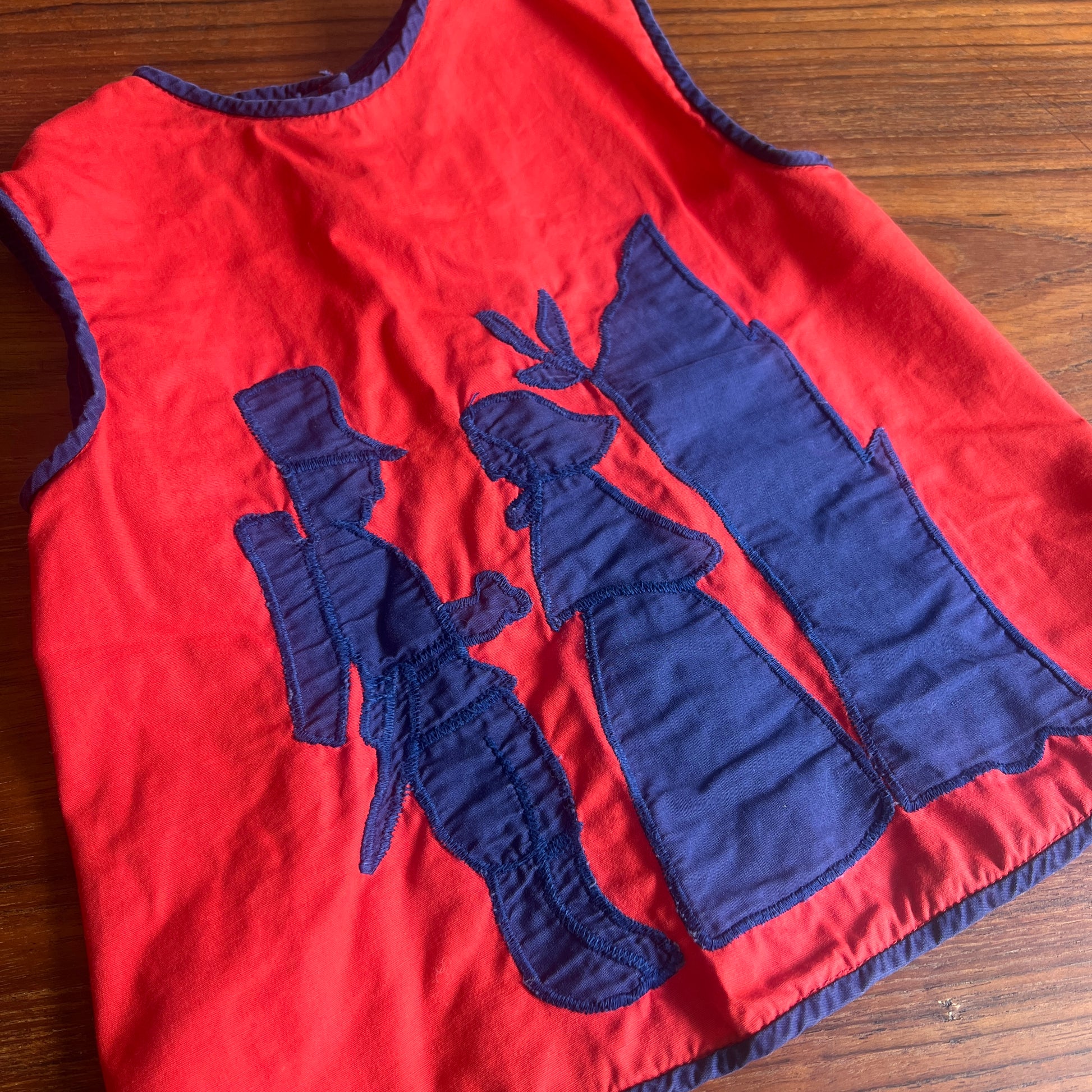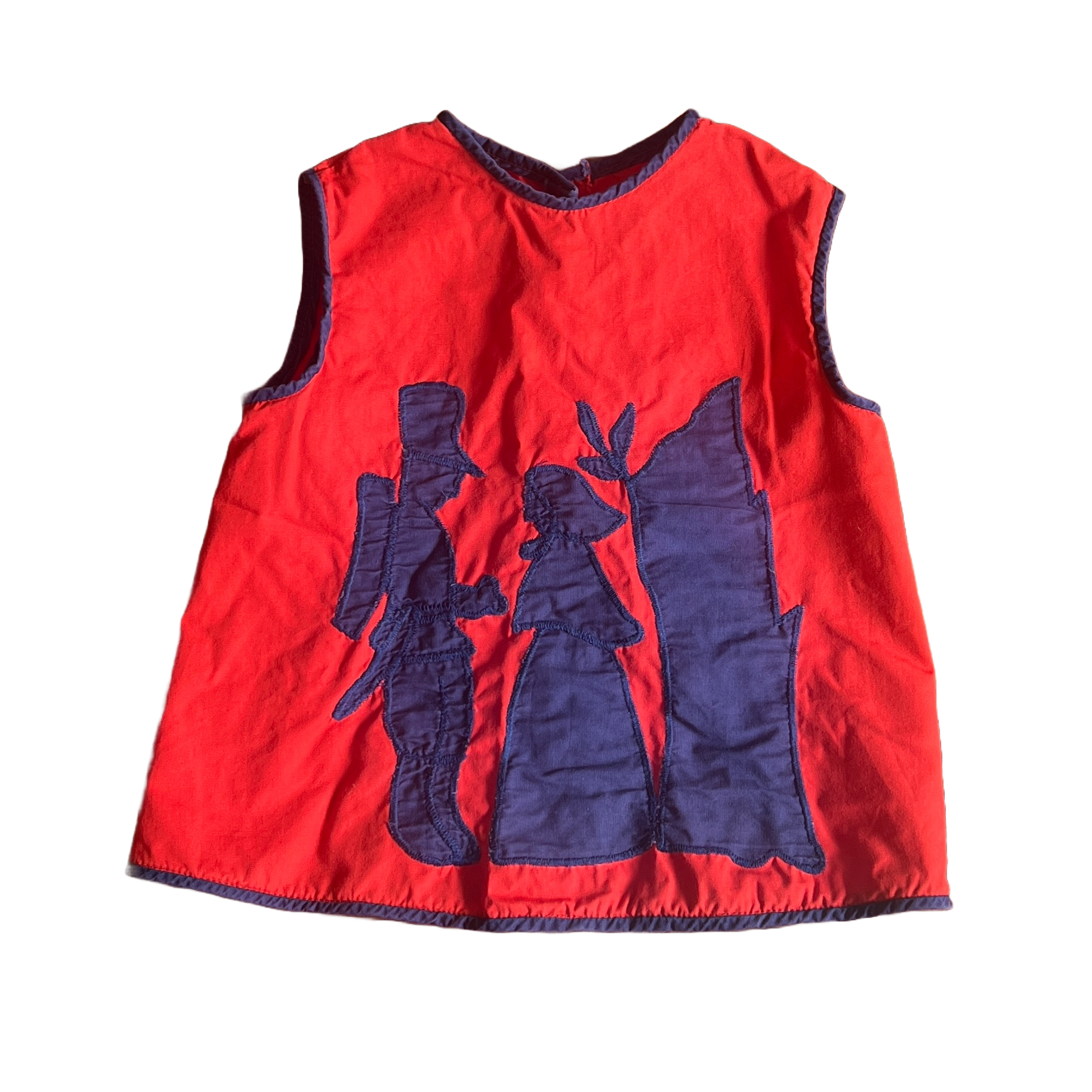 Den fineste unika-vest - hjemmelavet med kærlighed og blik for detaljer. Foran pryder nemlig et nostalgisk motiv af soldaten og heksen fra H.C. Andersens klassiske eventyr Fyrtøjet – en ægte hyldest til dansk fortællekunst og håndværkstradition.